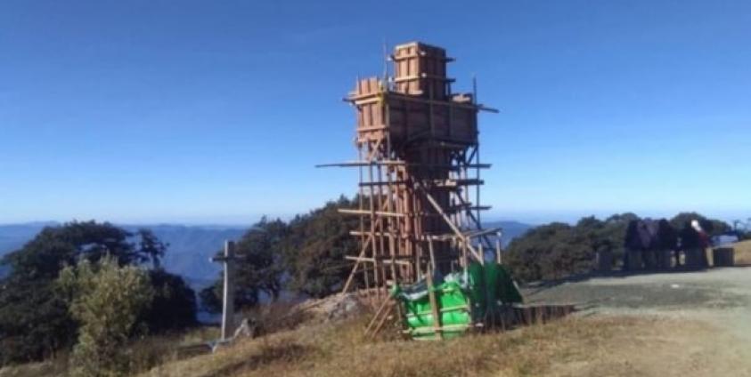 တောင်ထိပ်တွင် ခရစ်ယာန်ဘာသာတို့၏ အထွဋ်အမြတ်ထားသည့် လက်ဝါးကပ်တိုင် တည်ဆောက်ခြင်းမှာ ခွင့်ပြုမိန့် မကျသေးမီ တည်ဆောက်ခြင်းကြောင့် တားမြစ်စာ တင်ပြရခြင်းဖြစ်ကြောင်း ခေါ်နူးစုမ်အမျိုးသား ဥယျာဉ်အုပ်ချုပ်ရေးမှူး ဦးတင်မြစိုးကပြောသည်။