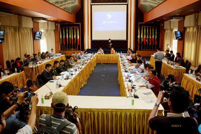 NRPC NRPC နှင့် NCA-S EAOs မှ နှစ်ဖက် ကိုယ်စားလှယ်များ ဖေဖော်ဝါရီ ၂-၃ ရက်က ဆွေးနွေးနေစဉ်။