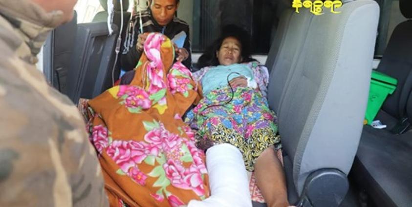 "မနေ့က ၆ နာရီလောက်မှာ လက်နက်ကြီးတွေနဲ့ အများကြီး ပစ်တယ်။ ဘယ်ကပစ်တာလဲ မသိဘူး။ ကျမတို့ အိမ်အောက်မှာထိုင်နေတာ အိမ်ဝန်းထဲမှာ လက်နက်ကြီးကျည်လာကျတယ်။ ဒါကြောင့် ကျည်စထိလို့ဒဏ်ရာရသွားတာ"ဟု ဒဏ်ရာရသူ မစောတင်မာ ကပြောသည်။