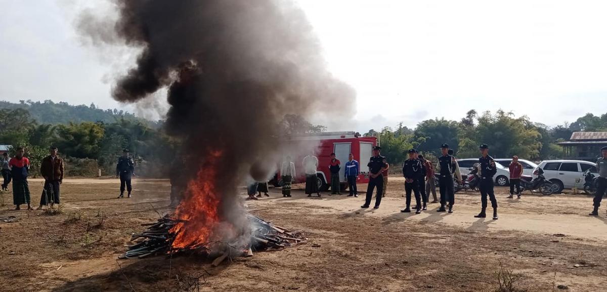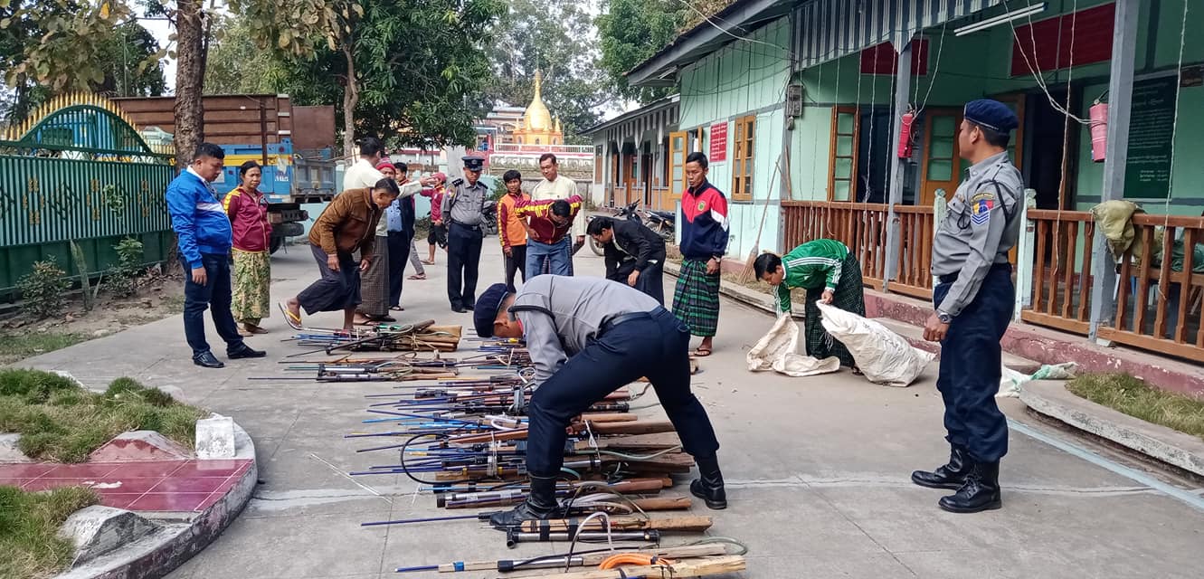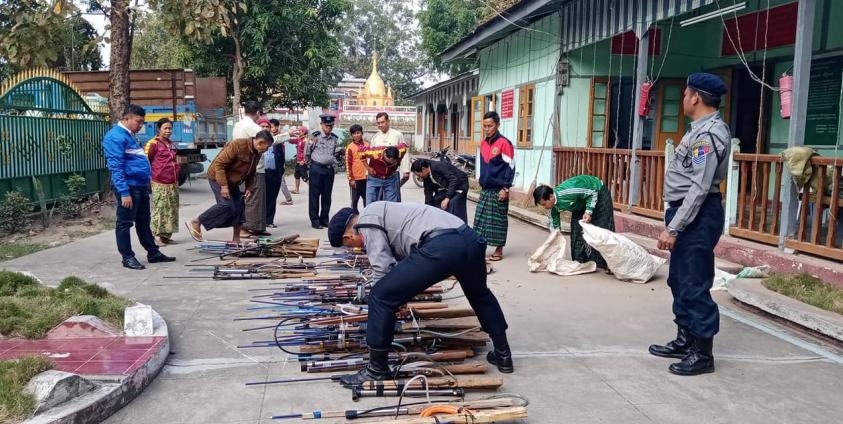 လေထိုးတံသေနတ်ပေါင်း ၁၅၆ လက်ကို မြို့နယ် စည်ပင်သာယာရေးအမှိုက်ကျင်းတွင် ဖေဖော်ဝါရီလ ၁၀ ရက်နေ့တွင် မြို့နယ် အုပ်ချုပ်ရေးမှူးနှင့် တာဝန်ရှိသူများက ဖျက်ဆီးခဲ့ကြောင်း မံစီ ပြန်ဆက်ဌာန သတင်းတွင် ဖော်ပြထားသည်။ သေနတ်ကိုင်ဆောင်ခြင်းဖြင့် မလိုလားအပ်သော ဖြစ်စဉ်များ ဖြစ်ပွားမှုမရှိစေရန် အုပ်ချုပ်ရေးဌာနမှ ရပ်ကွက် ၊ ကျေးရွားအုပ်ချုပ်ရေးအဖွဲ့များဖြင့် လိုက်လံသိမ်းဆည်းခဲ့ခြင်းဖြစ်သည်ဟုလည်း ဖော်ပြထားသည်။