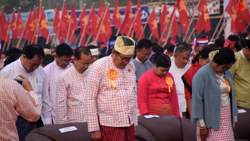 မွန်ပြည်နယ်ဝန်ကြီးချုပ် ဒေါက်တာအေးဇံနှင့် အစိုးရအဖွဲ့ဝင်များ၊ ဌာနဆိုင်ရာအကြီးအကဲများ (၇၃)ကြိမ်မြောက် မွန်အမျိုးသားနေ့အခမ်းအနားတက်ရောက်စဉ်(MNA)
