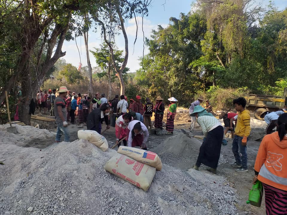 Photo by Nang Eaindray May — တံတား တည်ဆောက်ရာတွင် တပိုင်တနိုင် ကူညီပေးနေသည့် ဒေသခံများ