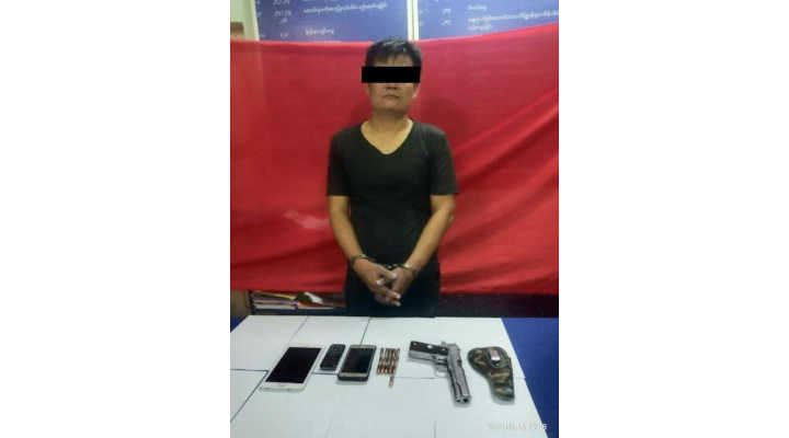 ၎င်းထံမှ ပစ္စတိုသေနတ် တစ်လက်၊ ကျည်ဆံ ၁၆ တောင့်၊ ကျည်အိမ် တစ်ခုတို့ကိုလည်း သိမ်းဆည်းရမိကြောင်း သိရသည်။