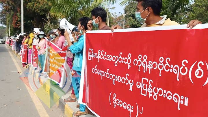 ကချင်ပြည်နယ်အတွင်း ကိုရိုနာဗိုင်းရပ်စ် ကူးစက်ပြန့်နှံ့မှု မရှိစေရန် တရုတ်နိုင်ငံသားများ ဖြတ်သန်းသွားလာခွင့်ကို ရပ်ဆိုင်းပေးရန် ဝိုင်းမော်ဒေသခံများ ဖေဖော်ဝါရီ ၂၄ ရက်က မြစ်ကြီးနားမြို့ စိမ်းမြဧရာ ပန်းခြံတွင် ဆန္ဒပြတောင်းဆိုခဲ့ကြသည်။