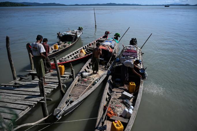 ရခိုင်ပြည်နယ်၊ ကျောက်ဖြူရှိ မက်ဒဲကျွန်းက ဆိပ်ခံတံတားပေါ်က တံငါသည်လှေများ။ Photos: AFP & EPA