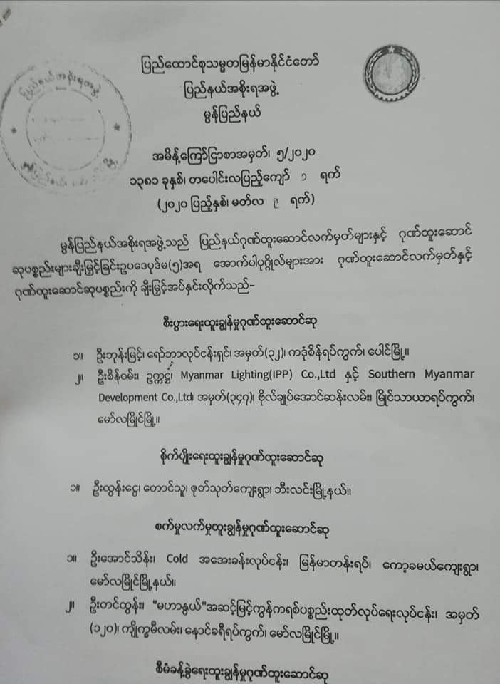 မွန်ပြည်နယ်အစိုးရအဖွဲ့ အမိန့်ကြေငြာစာ (Copy)