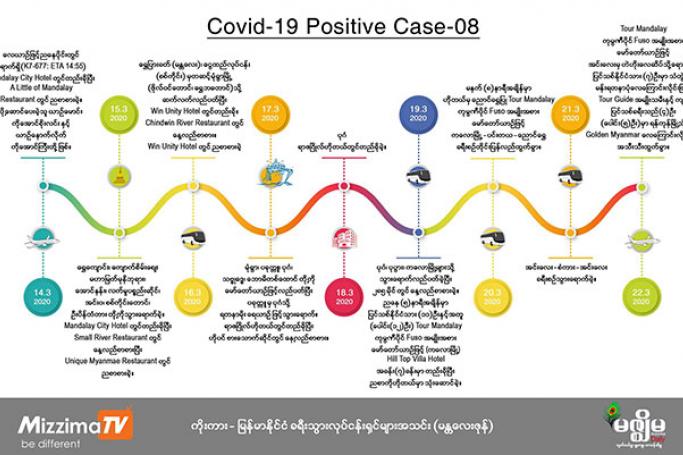 လူနာ အမှတ် (၈) သည် ပြည်တွင်းနေသူများထဲမှ COVID-19 ကူးစက်သူ ပထမဆုံးဖြစ်သော်လည်း မည်သို့ ကူးစက်ခံရသည်ကို မသိရှိရပါ။