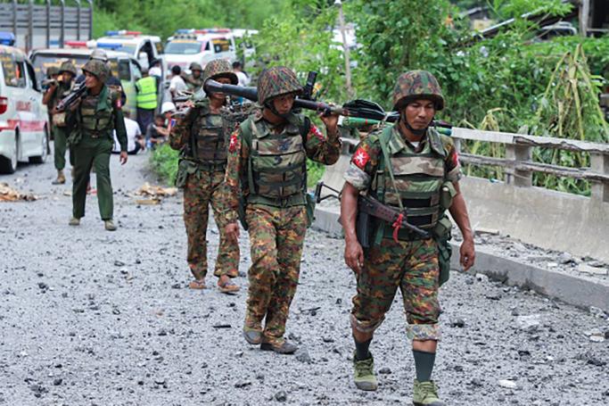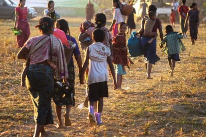 တိုက်ပွဲရှောင်သူများ နေရပ်စွန့်ခွာသွားနေကြစဉ်(ပုံ-AFP)