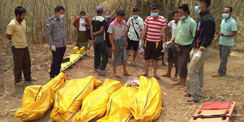 ရဲစခန်းမှ အကြောင်းကြားလာသည့်အတွက် အလောင်းများကို ကုံးမုံရွာအနီး ပြည်ထောင်စု ကားလမ်းမကြီးမှ ၆ မိုင်ခန့်အကွာ တောတွင်းတစ်နေရာတွင် သွားရောက်သယ်ယူခဲ့သည်ဟု သီပေါမြို့ နယ်စည်းမခြား ပရဟိတအဖွဲ့မှ ကိုမျိုးက ဧပြီလ ၉ ရက်တွင် ပြောသည်။ ၁၂ နှစ် အရွယ် ယောကျ်ားလေးတစ်ဦး၊ အမျိုးသား ၂ ဦး၊ အမျိုးသမီး ၂ ဦးတို့ဖြစ်သည်ဟု ဆိုသည်။