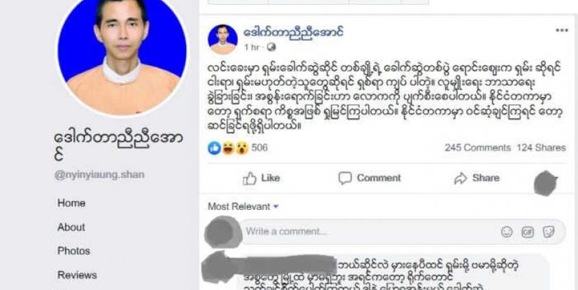 ပို့စ်ပိုင်ရှင်ဟာ သာမန်လက်လုပ်လက်စား နိုင်ငံသားတစ်ယောက် မဟုတ်ပါဘူး၊ သျှမ်းပြည်နယ်အစိုးရအဖွဲ့ရဲ့ တာဝန်ရှိ ဝန်ကြီးတစ်ယောက်ဖြစ်ပြီး အခုလိုမျိုး မဖွယ်မရာ ပြောဆိုရေးသားတာကို လုံးဝ ရှုတ်ချပါတယ်။ အမှိုက်ကစ ပြသာဒ်မီးလောင်ဆိုတာလို ဒီ မဖွယ်မရာ ပြောဆိုမှုကနေ လူမျိုးရေးမုန်းတီးမှုအထိ ကူးစက်ကြီးထွားသွားနိုင်ပါတယ်။