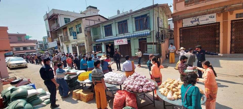 မူဆယ် တောင်ရပ်ကွက် အခြေခံ လူတန်းစားများကို ပစ္စည်းဝေးပေးနေသည့်ပုံ
