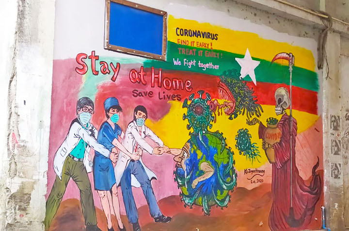 ကိုရိုနာဗိုင်းရပ်ကြောင့် လူတိုင်း မိမိအိမ်တွင်နေကြရန် ပညာပေး ပန်းချီတွင်ပါရှိသော အနီရောင်ဝတ်ရုံကို သေမင်းတမန်အဖြစ်သာရေးဆွဲခဲ့ခြင်းဖြစ်ကြောင်း ဗုဒ္ဓဘာသာကို ပုပ်ခတ်ခြင်းမဟုတ်ကြောင်း ပန်းချီရေးဆွဲသူ ကိုဇေယျာနောင်က ဧပြီလ ၃ ရက်နေ့၌ အငြင်းပွားမှု ဖြစ်ပွားချိန်တွင် ပြောဆိုခဲ့သည်။
