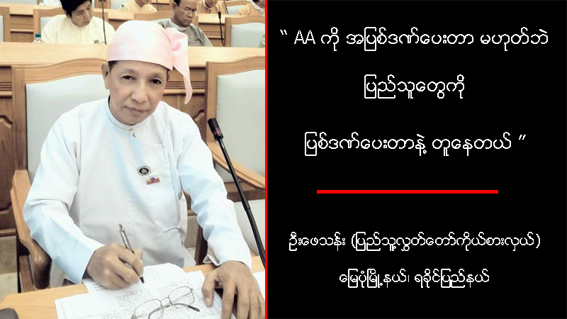 အခုသူတို့ ကြေညာချက်အတိုင်းဆိုရင် အကြမ်းဖက်အဖွဲ့အစည်း ရှိတဲ့နယ်မြေ၊ အဲဒီနယ်မြေထဲမှာရှိတဲ့ ပြည်သူတွေဟာလည်း နိုင်ငံသူနိုင်ငံသားတွေ ဖြစ်တယ်။ အဲဒီနယ်မြေတွေ မပါဝင်တာဟာ AA ကို အပြစ်ဒဏ်ပေးတာ မဟုတ်ပဲ ပြည်သူတွေကို ပြစ်ဒဏ်ပေးတာနဲ့ တူနေတယ်။