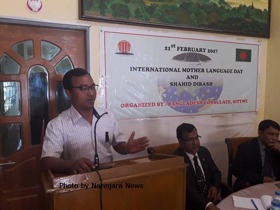 နိုင်ငံတကာ မိခင်ဘာသာစကားနေ့ အထိမ်းအမှတ် အခမ်းအနားတစ်ခုကို ရခိုင်ပြည်နယ် စစ်တွေမြို့ရှိ ဘင်္ဂလားဒေ့ရှ် ကောင်စစ်ဝန်ရုံးတွင် ဖေဖော်ဝါရီ ၂၁ ရက်နေ့က ကျင်းပ ပြုလုပ်ခဲ့သည်။