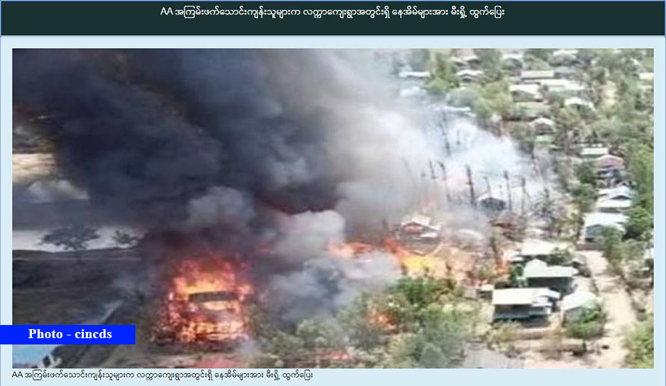 “AAအကြမ်းဖက်သောင်းကျန်းသူများ မီးရှို့ခဲ့မှုကြောင့် ကျေးရွာအတွင်းရှိ နေအိမ် ၂၀ လုံးခန့် မီးလောင် ပျက်စီး သွားခဲ့ကြောင်း သိရှိရသည်။” ဟု တပ်မတော်၏ ထုတ်ပြန်ချက်ထဲတွင် ရေးသားထားသည်။