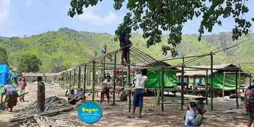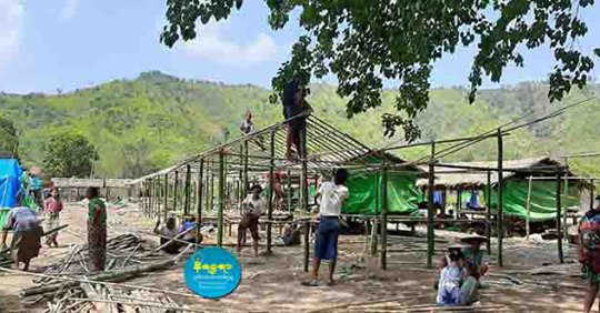 ထွန်းခိုင် (တောင်ရင်းကျွန်း) — မိုးမကျမီအပြီး ကိုယ်ထူကိုယ်ထတည်ဆောက်နေသော မြေပုံမြို့နယ်၊ စညှင်းစစ်ဘေးရှောင်စခန်းရှိ အဆောင်တဲများ ဆောက်လုပ်ရန်အတွက် အကူအညီများလိုအပ်နေကြောင်း ကယ်ဆယ်ရေးလုပ်ငန်းများ ဆောင်ရွက်နေသူ ဦးဇင်း အရှင် သဘာဝနဒီက မိန့်ကြားသည်။
