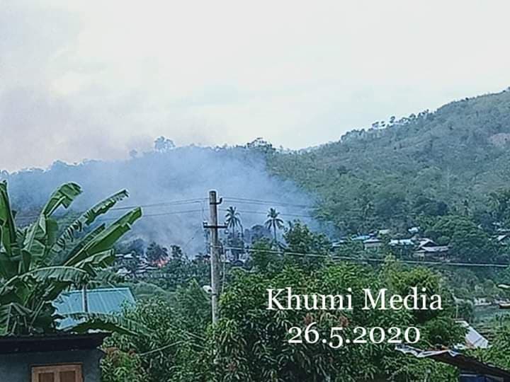 တိုက်ပွဲကြောင့် ရွာသားများအားလုံး ထွက်ပြေးတိမ်းရှောင်နေချိန် နေအိမ်များ မီးလောင်မှုဖြစ်ပွား