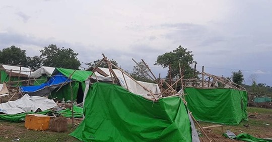 “ မေလ ၂၇ ရက်နေ့ နေ့လယ်က လေတိုက်ခတ်လို့ တဲအိမ်တွေအားလုံးပြိုလဲသွားတယ်။ တစ်ဆောင်မှ မကျန်ဘူး။ သက်ကြီးရွယ်အိုတွေနဲ့ ကလေးတွေဆိုရင် တအားဒုက္ခရောက်ခဲ့ရတယ်။ အခု မိုးက စရွာနေပြီ။ လောလောဆယ်မှာတော့ ခန်းမတစ်ခန်းရှိလို့ အဲဒီမှာဘဲ အဆင်ပြေသလိုနေကြရတယ်။ ဟောခန်းမကလည်း ကျဉ်းကျဉ်းလေး၊ ပစ္စည်းတွေကလည်း အဲဒီမှာဘဲ ထားရတာဆိုတာ လူတွေနေလို့က အဆင်မပြေဘူး။ မတတ်သာလို့တစ်ခု နေကြရတာ။ အိပ်ဖို့နေရာလည်း မရှိဘူး” ဟု ပြောသည်။