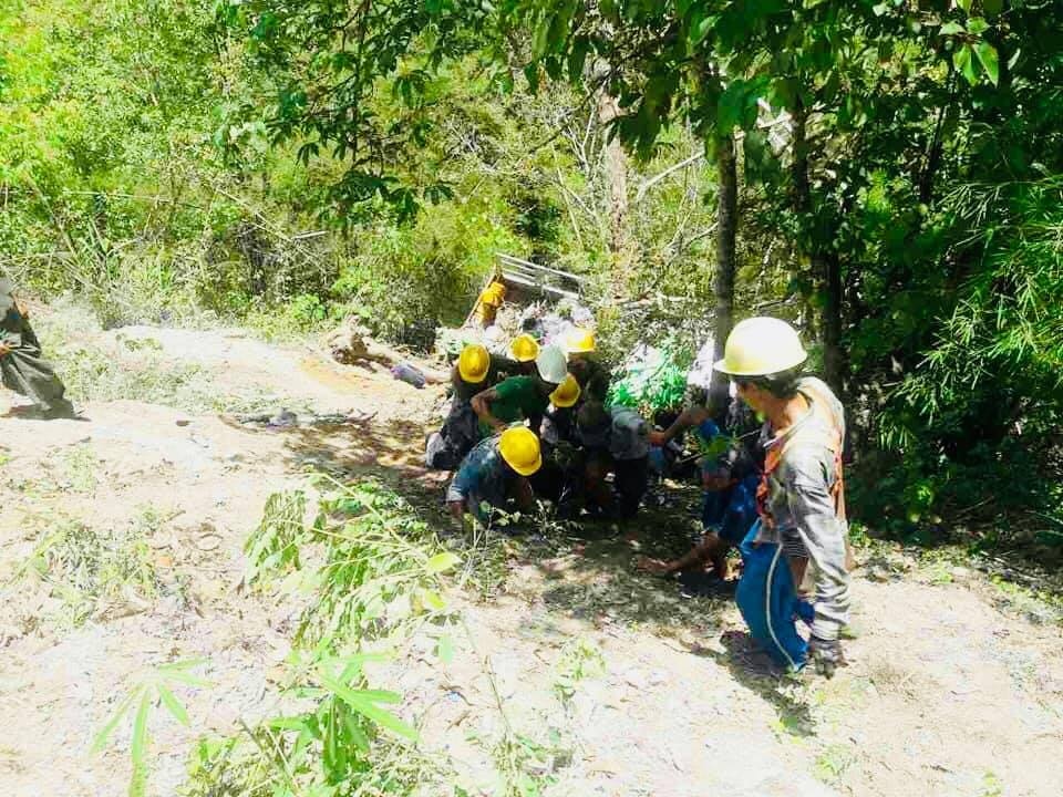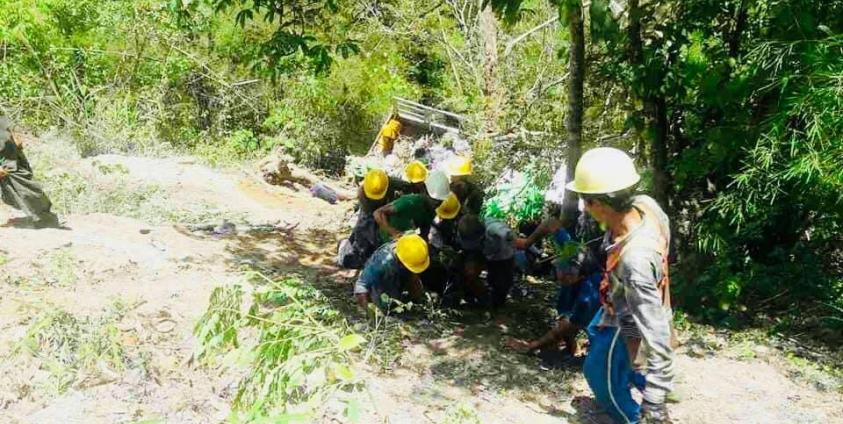 ချောက်ထဲကျသွားသော မဟာဓာတ်အားလိုင်းသွယ်သည့် လုပ်သားများကယ်ထုတ်နေစဉ် ( ဓာတ်ပုံ Sai Nge)
