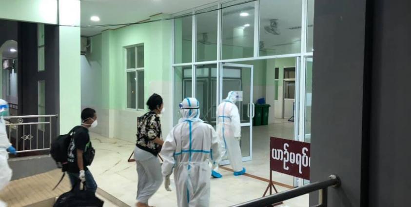 ဇွန် ၂ရက်ည တွင် မူဆယ် ကိုဗစ်- ၁၉ လူနာ နှင့် သူ့၏ အမျိုးသား မူဆယ်ခရိုင်ပြည်သူ့ဆေးရုံသို့ သွားရောက် ဆေးကုသခံယူနေစဉ်ပုံ