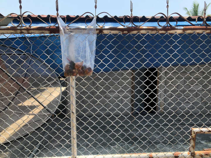 “ ဒါက ကိုဗစ်ကို ကာကွယ်တယ်လေ။ ရောဂါပိုးတွေ အိမ်ထဲမဝင်အောင်လို့ချိတ်ထားတာ” ဆိုပြီး ဖှန်မြို့နယ် က ရွှေ့ပြောင်းကလေးတွေကို စာသင်ပေးတဲ့ ဆရာက ပြောပြပါတယ်။