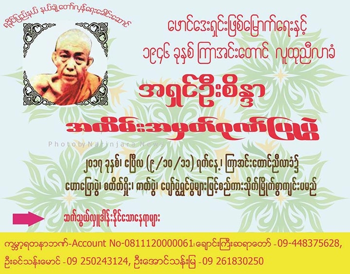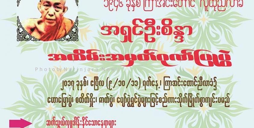 ရခိုင်တော်လှန်ရေး ခေါင်းဆောင် ဆရာတော် ဦးစိန္တာ အထိမ်းအမှတ် ဂုဏ်ပြုပူဇော်ပွဲ ကျင်းပမည်