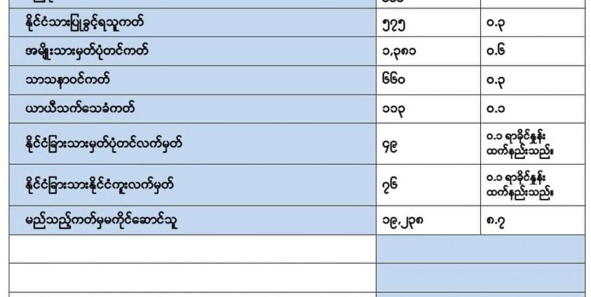 ၂၀၁၄ ခုနှစ်မှာ အစိုးရက ကောက်ယူခဲ့တဲ့ ပြည်လုံးကျွတ် သန်းခေါင်စာရင်းအရ ကယားပြည်နယ်အတွင်း နေထိုင်သူတွေထဲမှာ အသက်(၁၀)နှစ်နှင့်အထက် မည်သည့်ကဒ်မှ ကိုင်ဆောင်ထားခြင်းမရှိသူမှာ (၁၉၂၃၈) ယောက် ရှိနေပါတယ်။ ၂၀၁၄ ခုနှစ်မှ ကောက်ယူခဲ့တဲ့အတွက် အခုဆို ၂၀၂၀ ခုနှစ်မှာတော့ အသက် (၁၀)နှစ်အထက် မည်သည့်ကဒ်မှ ကိုင်ဆောင်ထားခြင်းမရှိသူတွေဟာဆိုရင် အသက် ၁၈ နှစ် ပြည့်ပြီးသူတွေပဲ ဖြစ်ကြပါတယ်။