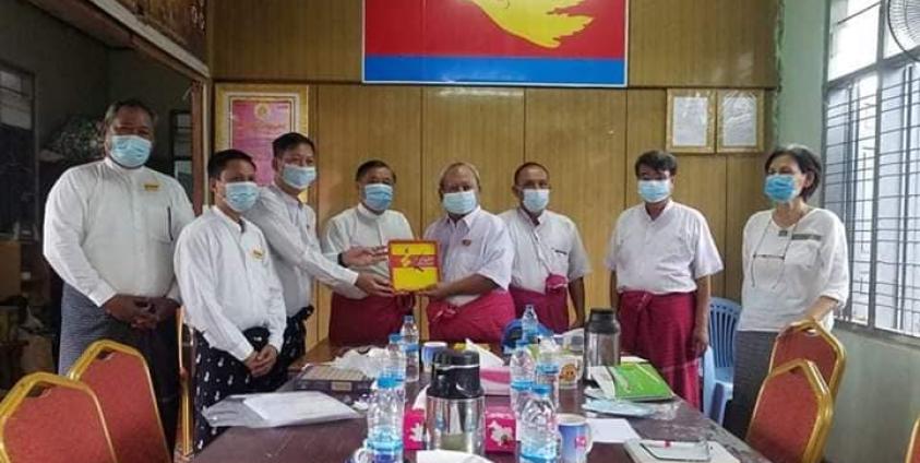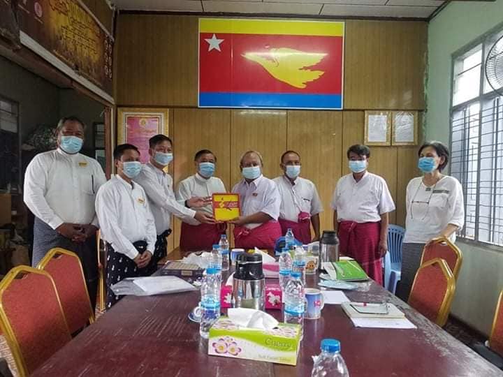 Photo- ပြည်သူ့ပါတီမှ မွန်ညီညွတ်ရေးပါတီဥက္ကဌသို့ အမှတ်တရပစ္စည်းပေးအပ်စဉ် (MUP)
