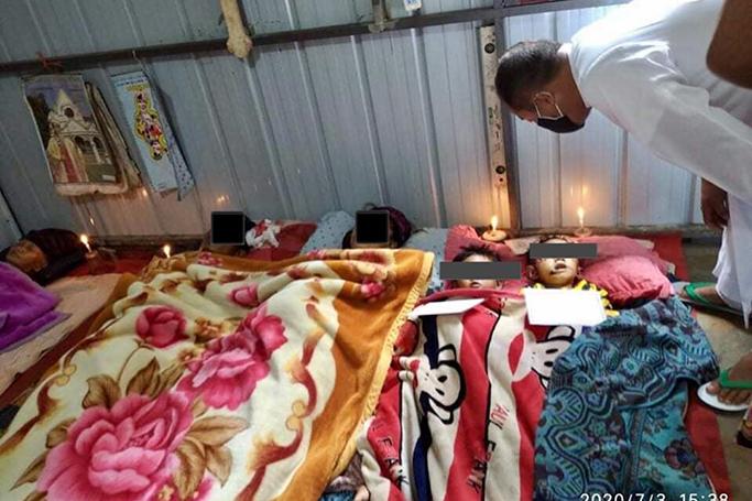 အရပ်ဘက်ကျေးရွာအုပ်ချုပ်ရေးပိုင်းတွင် မှတ်တမ်းရေးသူအဖြစ် ဆောင်ရွက်နေသည့် အမျိုးသားဖြစ်သူ၊ ဇနီးသည်၊ အသက် ၇ဝ အရွယ်အဘွား၊ ကလေးနှစ်ဦးတို့ကို သေဆုံးလျှက်တွေ့ရပြီး အခင်းဖြစ်ပွားစဉ် အိမ်၌မရှိသော အသက် ၁၃ နှစ်အရွယ် ကလေးတစ်ဦးသာ အသက်ရှင်ကျန်ရစ်ခဲ့ခြင်းဖြစ်ကြောင်း သိရသည်။