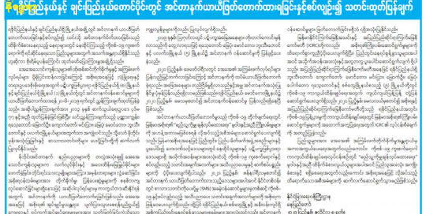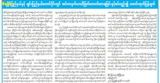 မာန်ယုကျော် — ရခိုင်ပြည်နယ်နှင့် ချင်းပြည်နယ်တောင်ပိုင်း ပလက်ဝမြို့နယ်တို့တွင် အင်တာနက်ဖြတ်တောက်ခံထားရခြင်းနှင့် ပတ်သက်၍ နိုင်ငံခြားရေးဝန်ကြီးဌာနက ဇူလိုင်လ ၈ ရက်နေ့တွင် သတင်း ထုတ်ပြန်ချက်တစ်စောင် ထုတ်ပြန်လိုက်သည်။