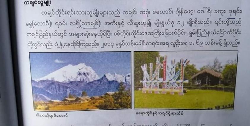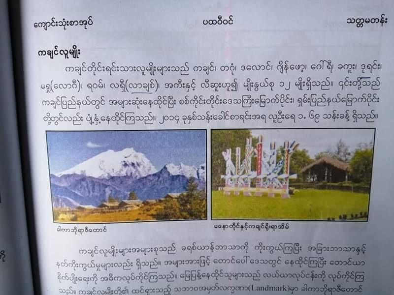 အခြေခံပညာ စနစ်သစ်သင်ရိုးညွှန်းတမ်းမှ သတ္တမတန်းပထဝီဘာသာရပ်တွင် ကချင်လူမျိုးများအကြောင်းကို မှားယွင်းစွာရေးသားဖော်ပြထားမှု ယခုနှစ်ပညာသင်နှစ်အမှီ ပြင်ဆင်ပေးရန် မြန်မာနိုင်ငံ ကချင်လူမျိုးများယဉ်ကျေးမှုဗဟို WHG မှ နိုင်ငံတော်သမ္မတနှင့် အတိုင်ပင်ခံပုဂ္ဂိုလ်ထံသို့ စာတင်သွားမည်ဖြစ်ကြောင်း သိရသည်။