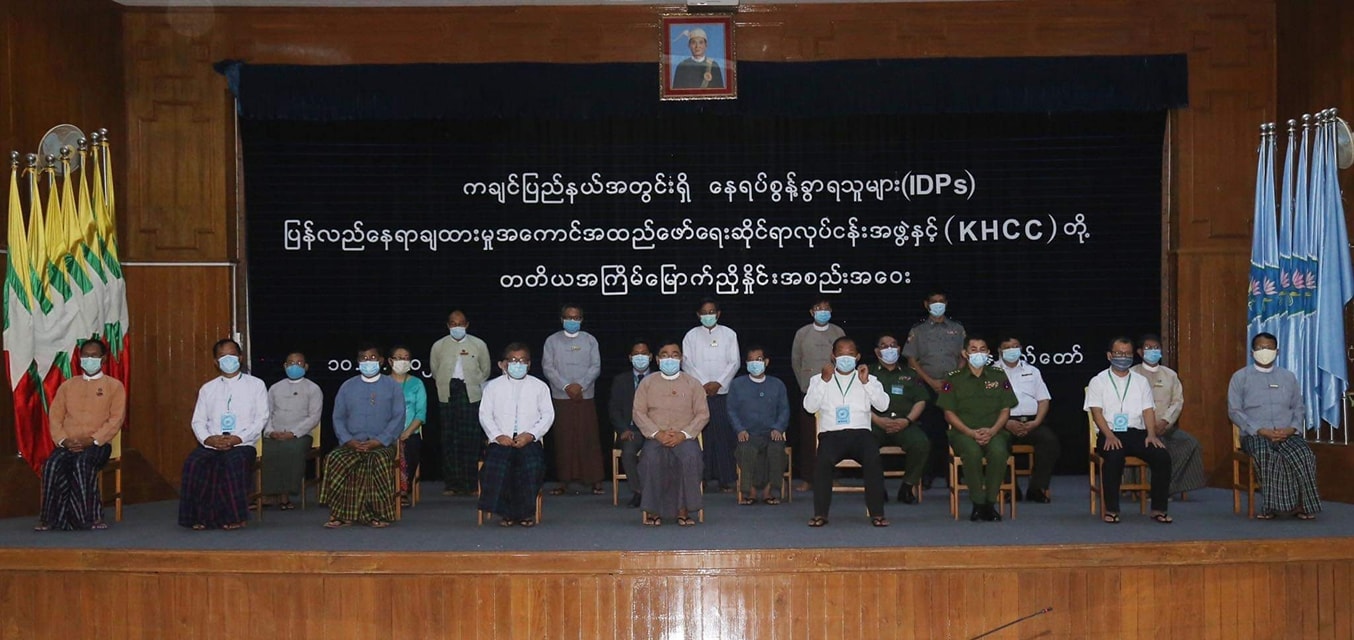အစိုးရတပ်နှင့် ကချင်လွတ်လပ်ရေးတပ်မတော် KIA တို့ကြား တိုက်ပွဲကြောင့် နေရပ်စွန့်ခွာရသူများအား ပြန်လည်နေရာချထားရန် အစိုးရအဖွဲ့နှင့် KHCC တို့ နေပြည်တော်တွင်ဆွေးနွေးမှုပြုလုပ်ခဲ့သည်မှာလွန်ခဲ့သည့် ဇူလိုင်လ ၁၀ ရက်နေ့ တွေ့ဆုံမှုသည် တတိယအကြိမ်မြောက် ရှိပြီဖြစ်သည်။