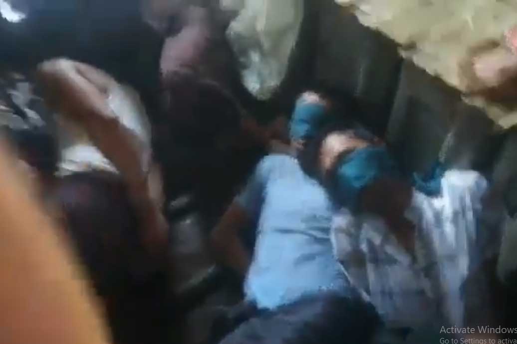 ပုံစာ- ပြီးခဲ့သည့် ဧပြီလ ၁၀ ရက်နေ့က ပုဏ္ဏားကျွန်းမြို့နယ်၊ ကျောက်ဆိပ်ကျေးရွာသားများအား စစ်ရေယာဉ်တစ်စီးပေါ်တွင် တပ်မတော်သားများက ကန်ကျောက်နှိပ်စက်နေသည့် ဗီဒီယိုတစ်ခု ပျံ့နှံ့လာခဲ့သည်။