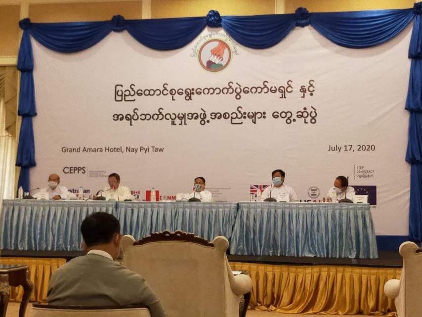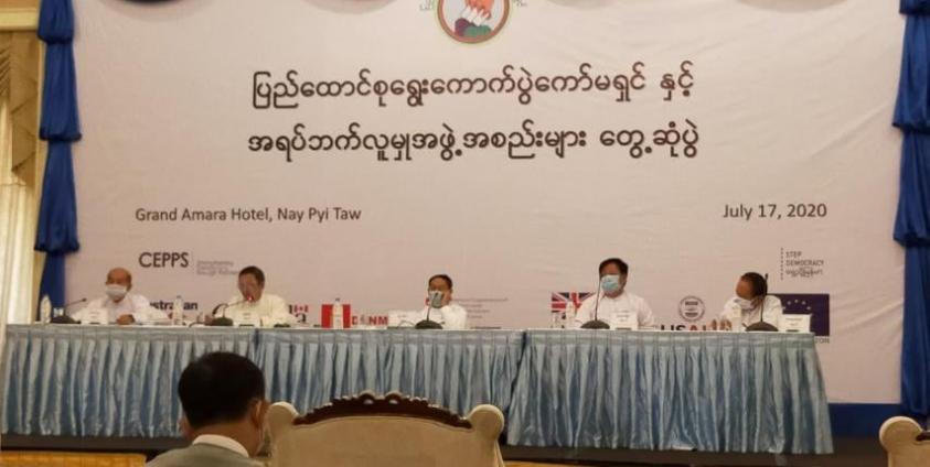 ပြည်ထောင်စုရွေးကောက်ပွဲကော်မရှင်နှင့် အရပ်ဘက်လူမှုအဖွဲ့အစည်းများ ဇူလိုင်လ ၁၇ ရက်နေ့က နေပြည်တော်တွင်တွေ့ဆုံပွဲတစ်ခုပြုလုပ်ခဲ့ရာ၌ UEC ဥက္ကဋ္ဌ ဦးလှသိန်းကပြောဆိုခဲ့ကြောင်း ယင်းတွေ့ဆုံပွဲ တက်ရောက်ခဲ့သူ ရခိုင်လူငယ်မျိုးဆက်သစ်ကွန်ယက်အဖွဲ့မှ ကိုမင်းဘာချေကဆိုသည်။