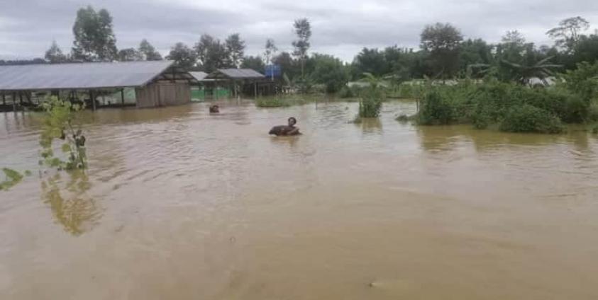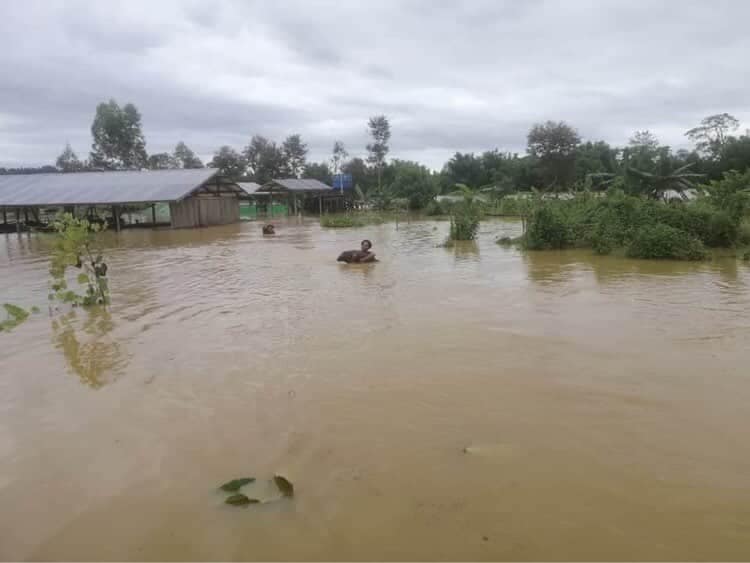 ဇူလိုင် ၁၉ ရက်ညတွင် မိုးသည်းထန်စွာ ရွာသွန်းမှုကြောင့် ယနေ့ နံနက်ပိုင်း ၂ နာရီ မှ ၃ နာရီအတွင်း ရေစတင်ဝင်ရောက်လာခြင်းဖြစ်ပြီး နေအိမ်၊ စာသင်ကျောင်းနှင့် စစ်ရှောင်စခန်းတို့တွင် ရေပြည့်သွားသဖြင့် စစ်ပြေးဒုက္ခသည်များကိုလည်း ဘုရားကျောင်းဝင်းသို့ ရွှေ့ပြောင်းနေရာချပေးထားသည်ဟု ဆိုသည်။