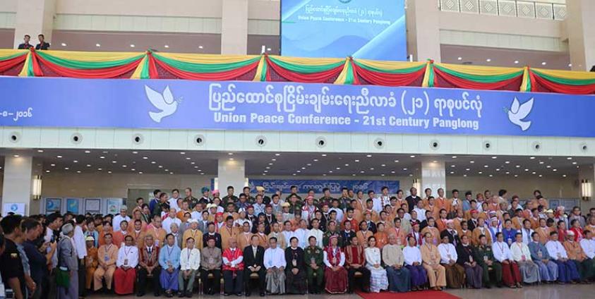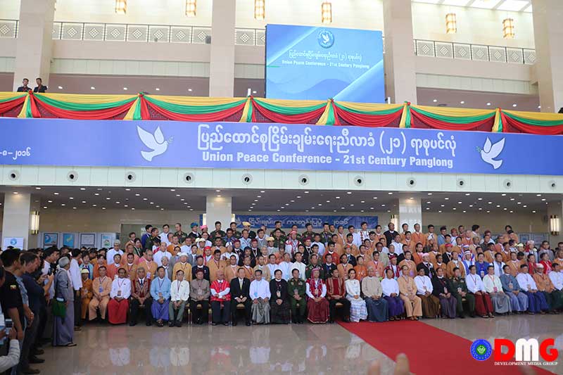 ပုံစာ - ဒုတိအကြိမ်ကျင်းပသော ပြည်ထောင်စုငြိမ်းချမ်းရေးညီလာခံ(၂၁) ရာစု ပင်လုံသို့ တက်ရောက်ခဲ့ကြသူများအား တွေ့ရစဉ်။