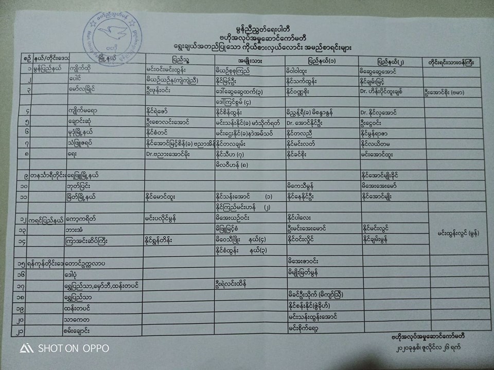 Photo- မွန်ညီညွတ်ရေးပါတီ ဗဟိုမှအတည်ပြုထားသော ၂၀၂၀ ရွေးကောက်ပွဲကိုယ်စားလှယ်လောင်းစာရင်း (Copy)