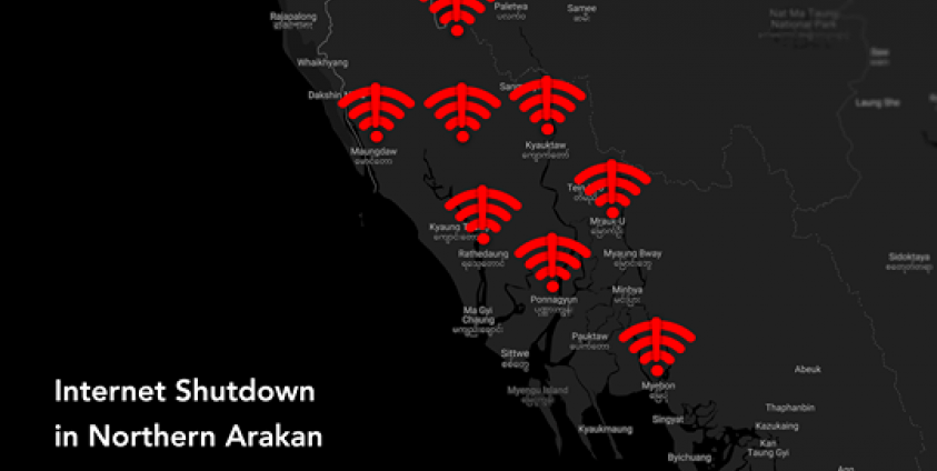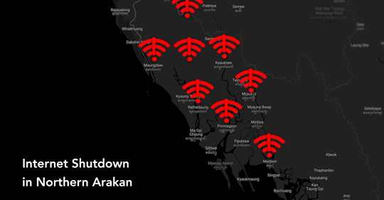 ရခိုင်ပြည်နယ်မှ မြို့နယ် ၈ ခုနှင့် ချင်းပြည်နယ် ပလက်ဝမြို့နယ်တို့တွင် အင်တာနက်လိုင်းများကို ၂ဝ၁၉ ခုနှစ် ဇွန်လ ၂၁ ရက်နေ့က ပိတ်ထားခဲ့သည်။