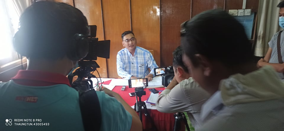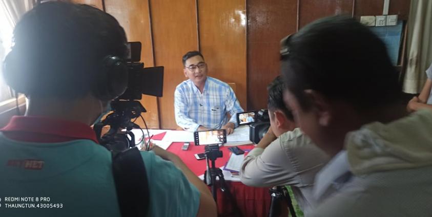 Photo-မွန်ပြည်နယ် ရွေးကောက်ပွဲကော်မရှင်အဖွဲ့ခွဲ အတွင်းရေးမှူး ဦးဟိဏ်းလင်းထက် သတင်းထောက်များကို ရှင်းလင်းစဉ် (MNA)