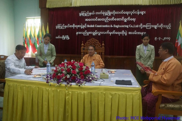 မွန်ပြည်နယ်အစိုးရနှင့် Bedok Construction & Engineering Co,Ltd တို့ MoU လက်မှတ်ရေးထိုးပွဲ(MOI)