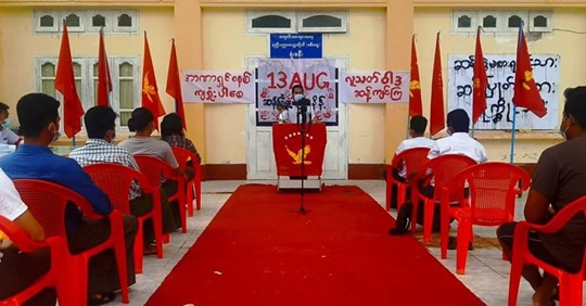 သြဂုတ် ၁၃ ဆန်ပြဿနာနေ့ ဝမ်းနည်းအောက်မေ့ဖွယ်အခမ်းအနားကို ကျန်းမာရေးဝန်ကြီးဌာန၏ လက်ညွှန်းချက်အတိုင်း တစ်ယောက်နှင့် တစ်ယောက် ၆ ပေအကွာနေထိုင်ပြီး ကျင်းပခဲ့ကြောင်း သိရှိရသည်။