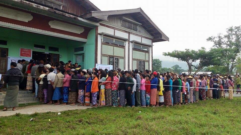 ၂၀၁၅ရွေးကောက်ပွဲတွင် မဲရုံ၌ ဆန္ဒမဲ ပေးနေရန်တန်းစီနေသော မိုးညှင်းပြည်သူများ