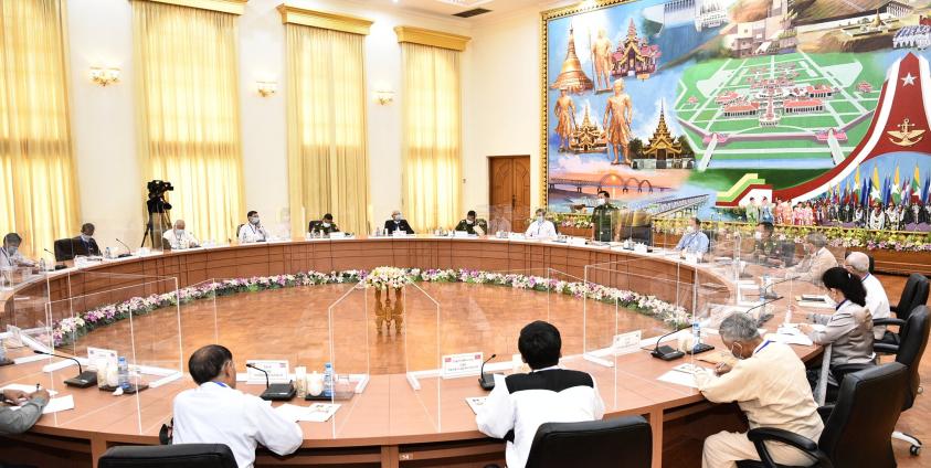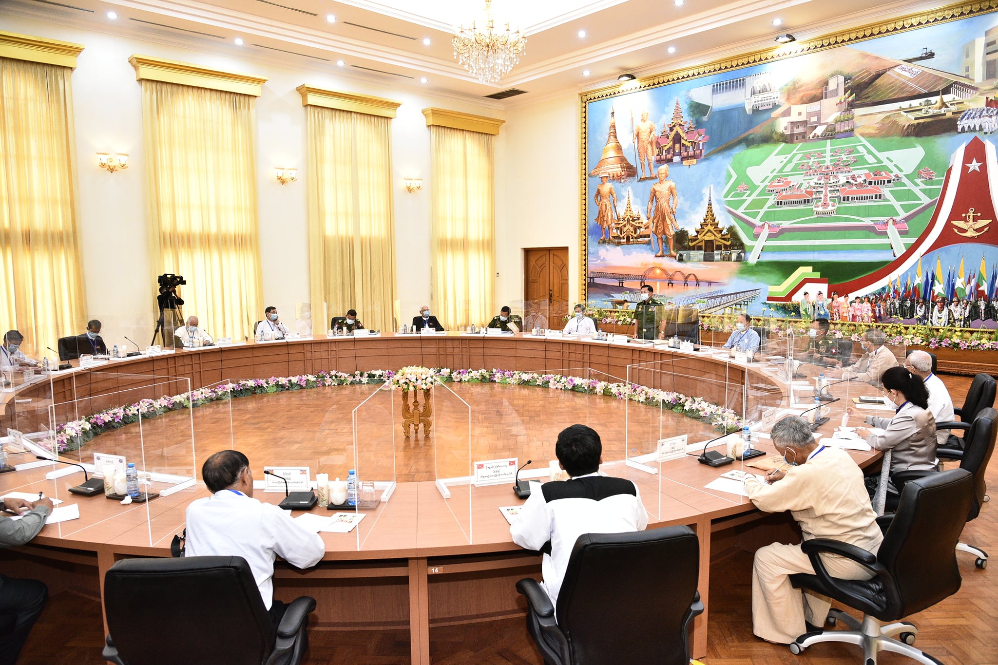 နိုင်ငံတော်စီမံအုပ်ချုပ်ရေးကောင်စီဝင် ဒေါက်တာဗညားအောင်မိုးနှင့် အဖွဲ့ဝင်အချို့၊...