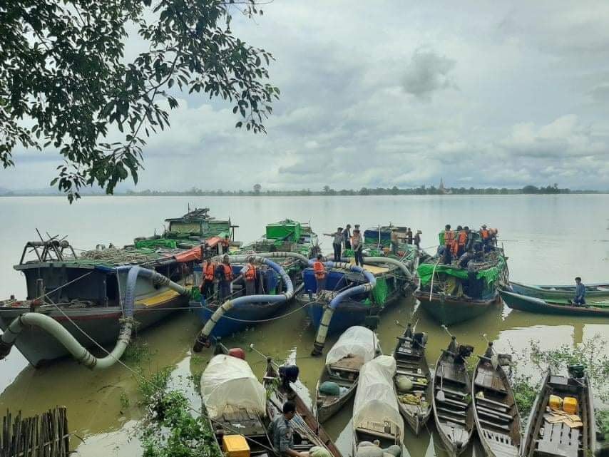 ဧရာဝတီမြစ်ကြောင်းတစ်လျှောက် မြစ်ကြီးနားမြို့နယ်နှင့် ဝိုင်းမော်မြို့နယ်တွင် တရားမဝင်ရွှေတူးဖော်နေသည့် စက်လှေပေါင်း ၂၀ ကျော်ကို သြဂုတ်လ ၁၅ ရက်နေ့ တစ်ရက်အတွင်း ဖမ်းဆီးထားသည်ဟု သိရသည်။