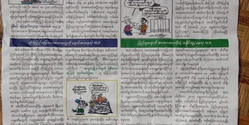 NLD ပါတီကို ကန့်ကွက်ဝေဖန်သည့် စာများ ပြန့်ကျဲထား