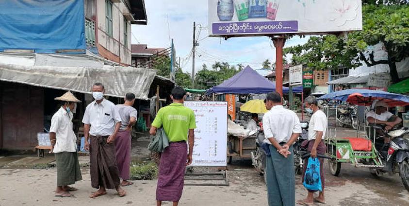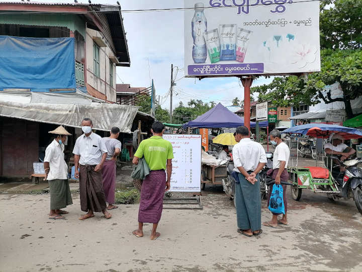 အင်တာနက်သုံး၍ အဆင်မပြေသော ရခိုင်ပြည်နယ်၊ မြောက်ဦးမြို့တွင် Covid-19 နှင့်ပတ်သက်သည့် သတင်းအချက်အလက်များကို အများပြည်သူသိရှိနိုင်အောင်အတွက် ကြော်ငြာဆိုင်းဘိုးလေးများထောင်ပြီး ဖြန့်ဝေနေရသည်။