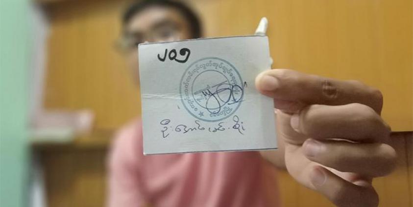 ရခိုင်ပြည်နယ် မြို့တစ်ချို့တွင် အိမ်ပြင်ထွက်သွားလာရေးအတွက် ကဒ်ပြားများ ဖြန့်ဝေ