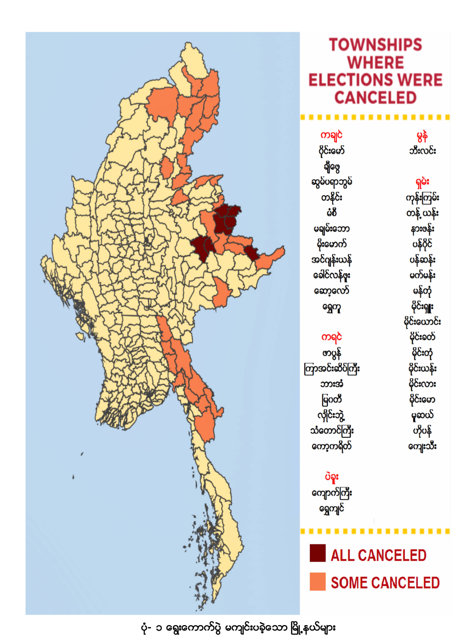 သို့သော် ကချင်ပြည်နယ်တွင် ကျန်ရှိသည့် ရပ်ကွက် ၁၇၈ ရပ်ကွက်နှင့် ကျေးရွာအုပ်စု ၃၉၂ အုပ်စု စုစုပေါင်း ၅၇၀ ကို မဲစာရင်းကောက်ယူကာ စာရင်းပြုစုထားသည်ဟု ဆိုသည်။