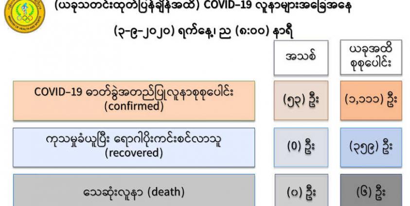 Photo- ကျန်းမာရေးနှင့် အားကစားဝန်ကြီးဌာနက နောက်ဆုံးထုတ်ပြန်သည့် Covid 19 ပိုးတွေ့လူနာစာရင် (MoHS)