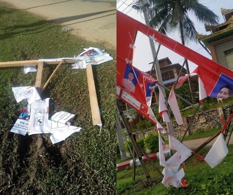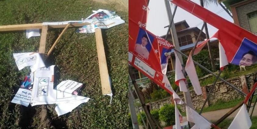 ယမန်နေ့ စက်တင်ဘာ ၁၈ ရက် ညပိုင်းက မိုင်းကိုင်မြို့နယ် အတွင်း တအာင်းအမျိုးသားပါတီ TNP ဆိုင်းဘုတ် (၃)နေရာ နှင့် သီပေါမြို့ တွင် အမျိုးသား ဒီမိုကရေစီ အဖွဲ့ချုပ် (NLD)ပါတီ ဆိုင်းဘုတ်များ ဖျက်ဆီးခံနေရခြင်းဖြစ်ကြောင်း ဒေသခံများ ပြောပြချက် အရသိရသည်။